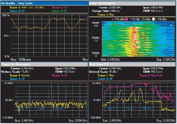 • 即时发现特殊的射频干扰设备并识别包括蓝牙、手提电话、微波炉和摄像机